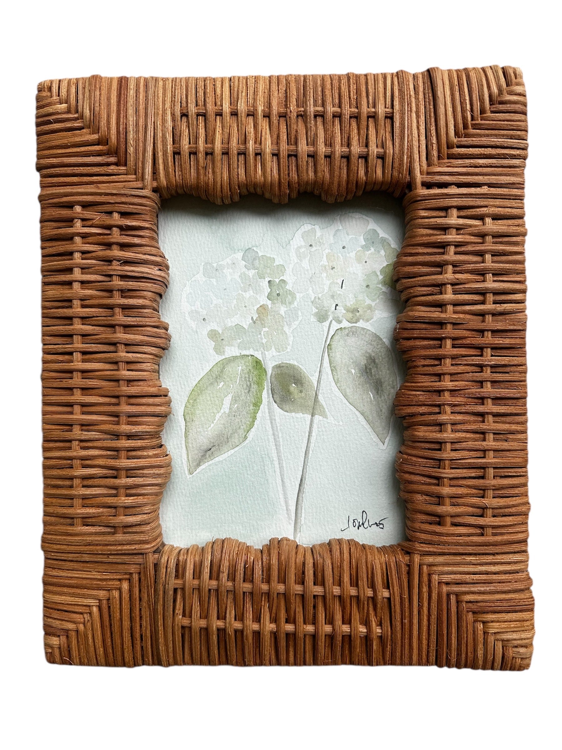Original 5x7 watercolor hydrangeas in tabletop wicker frame