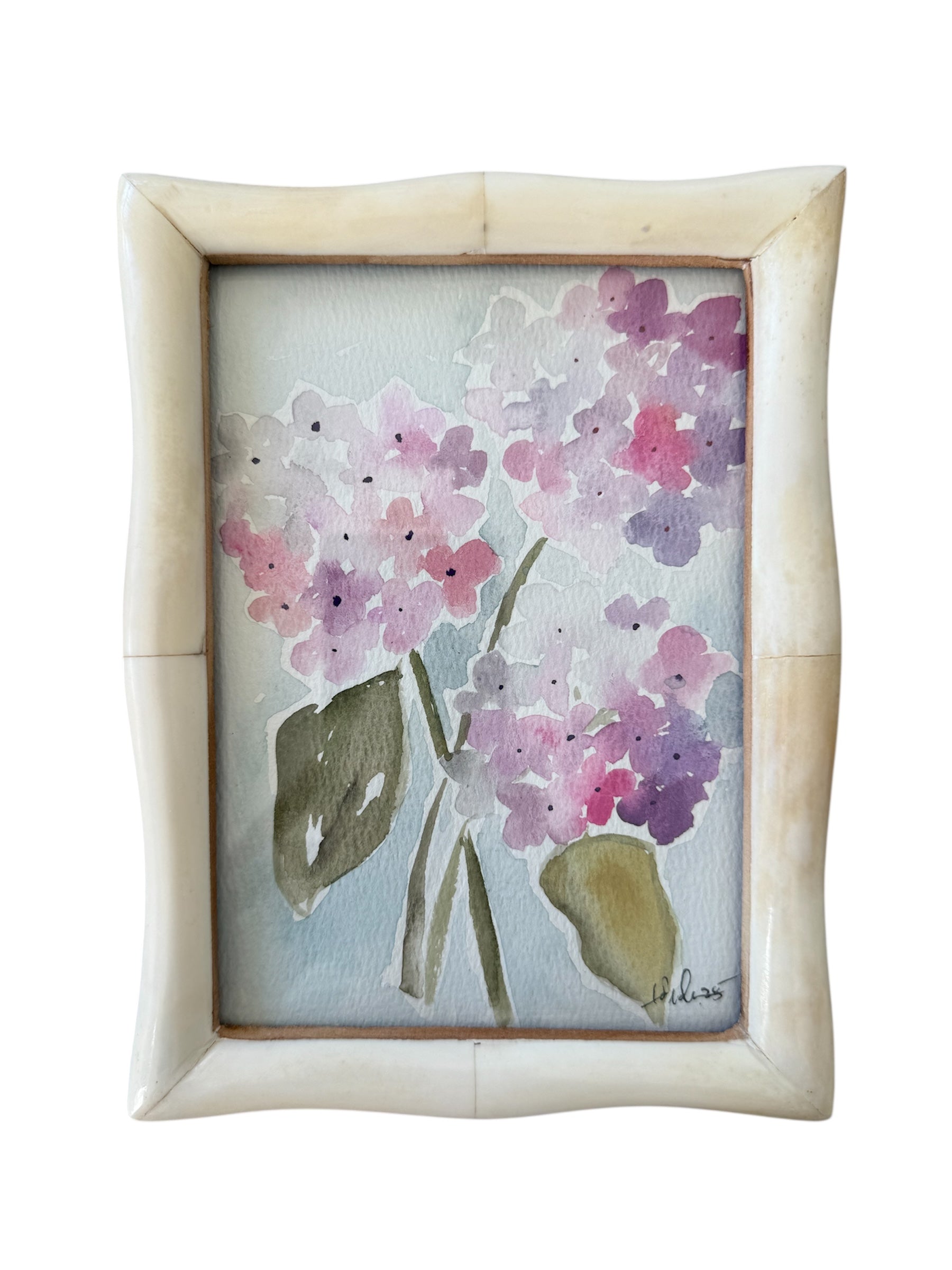 Original 5x7 watercolor hydrangeas in tabletop frame