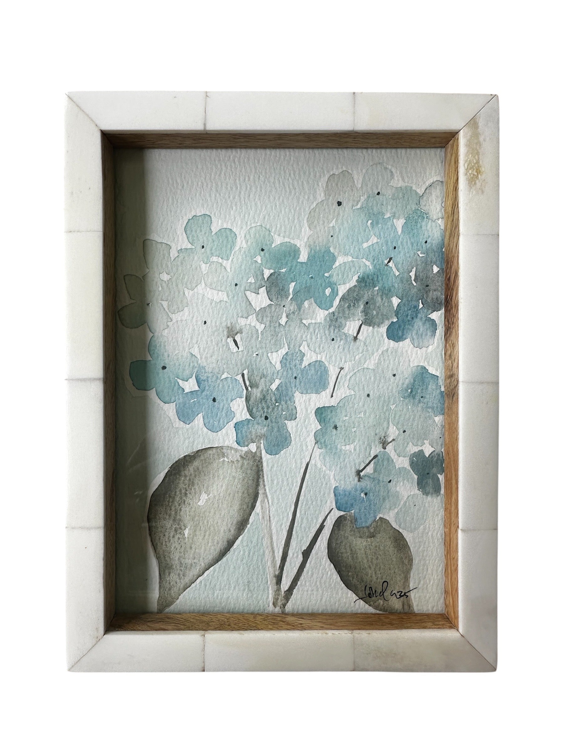 Original 5x7 watercolor hydrangeas in tabletop frame