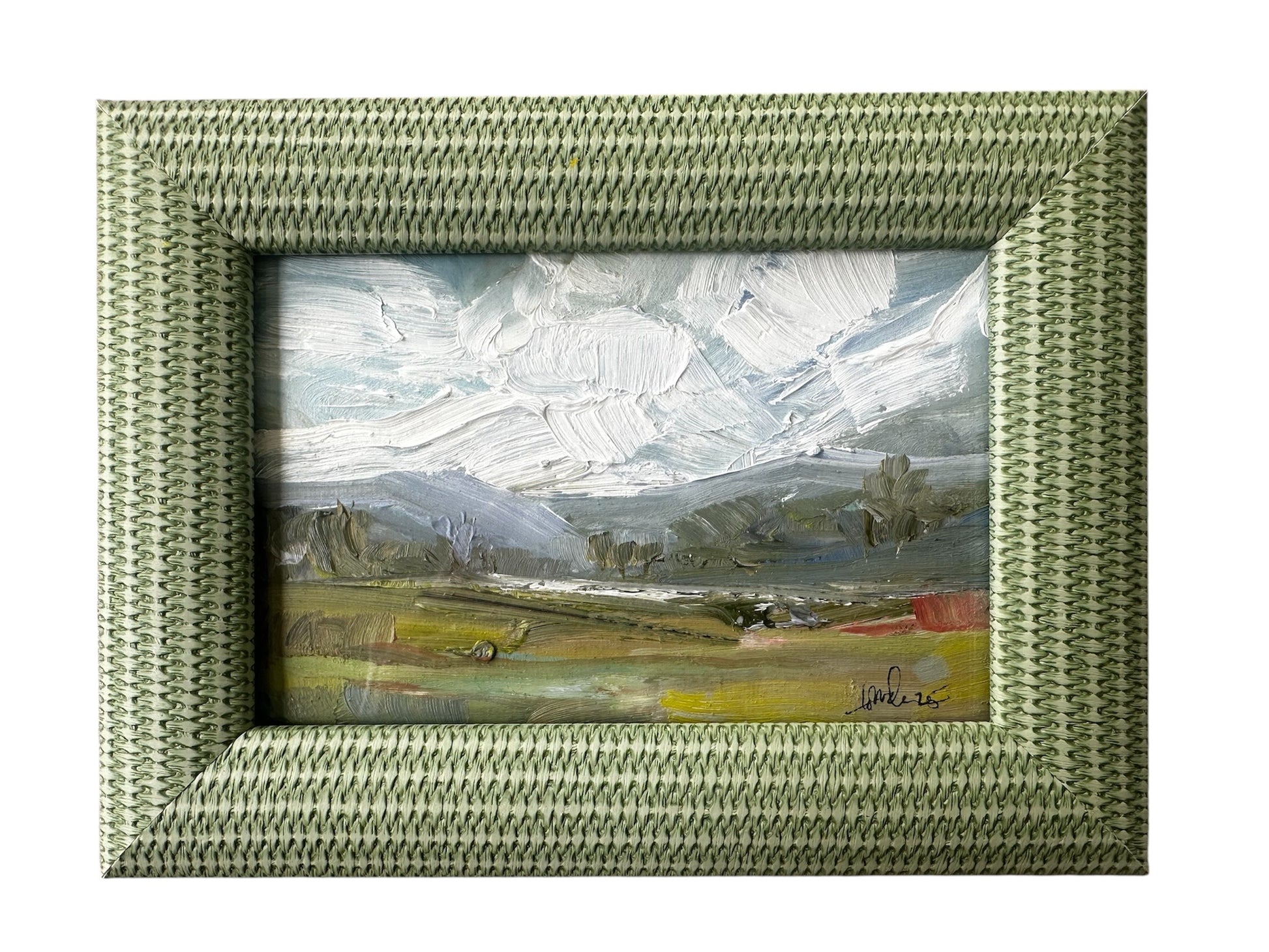 Original 4x6 oil mountain scape in tabletop frame