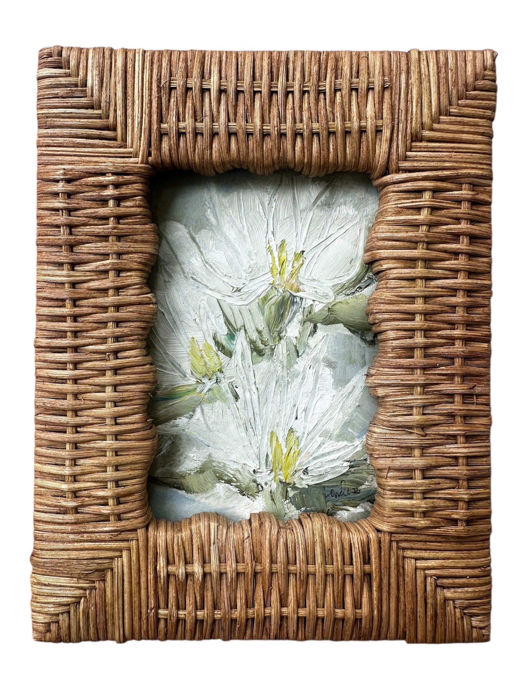 Original 4x6 oil water lilies in tabletop wicker frame